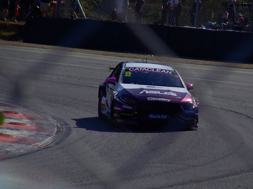 Ingram would start out of position causing him to get a 5 second penalty later on in the race. Ingram and Sutton would fight hard in the opening corners but Ingram defended the position before contact into McLeans forced the Hyundai wide giving Sutton the inside into Coppice.